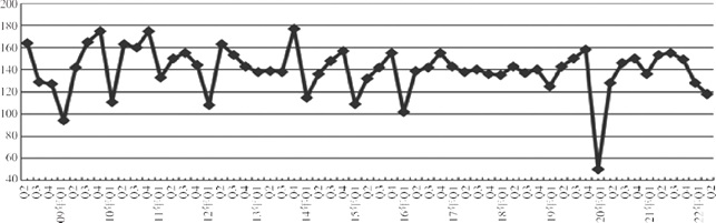 四季度,安防企业家信心指数为138,比上季度下降10个百分点,位于"较景气区间"(见图1)。在调查企业中,有47%的企业对行业发展状况持"乐观"态度,有44%的企业认为"一般",认为"不乐观"的企业占9%。